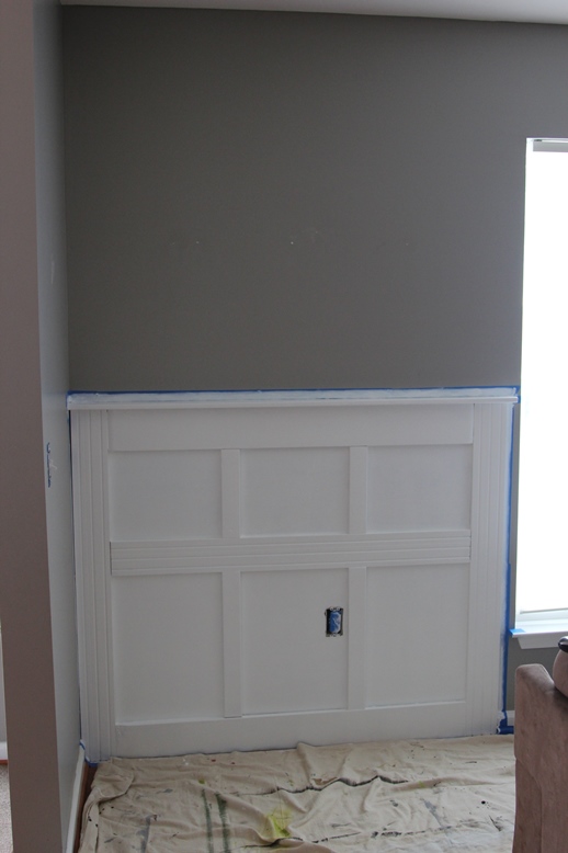 We taped off the walls and floor, got out our gear and set to work painting. and painting. and paintinGAH. (This took about 4 coats, including primer.)