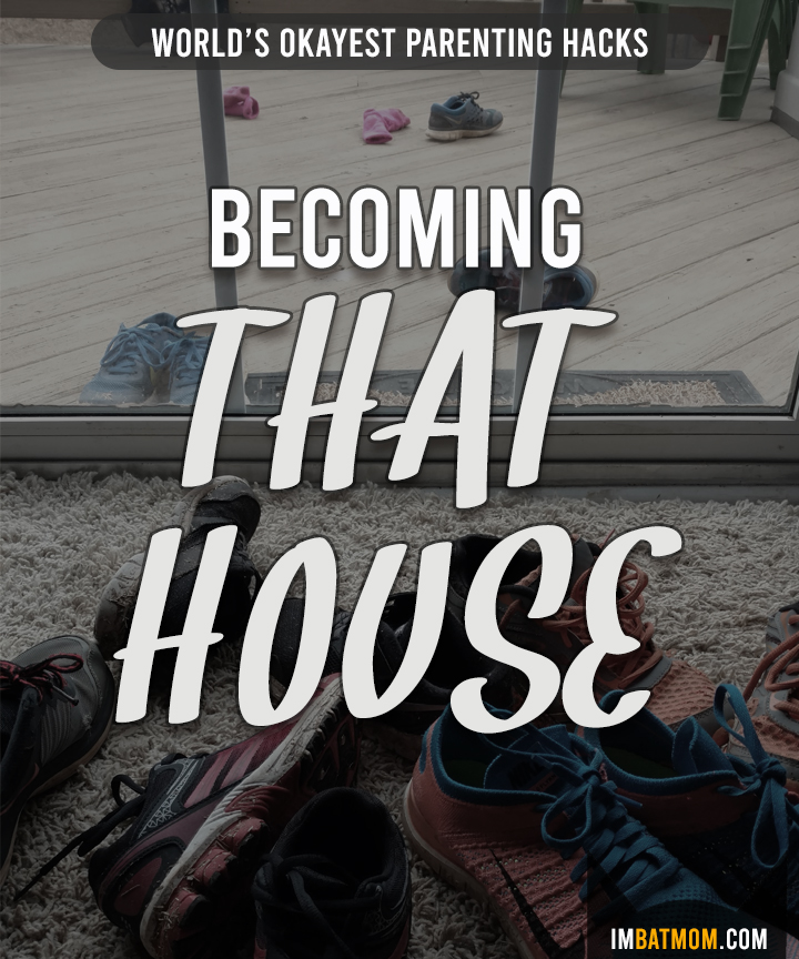 Actual picture of kids’ shoes at my back door, to commemorate the first time I felt like “that house.”